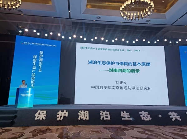 我国湖泊数量多、类型全、分布广,湖泊环境与生态演变受流域自然环境因素和人类活动的双重影响,呈现出不同的区域变化特征和生态环境问题。湖泊保护事关国计民生与国家长治久安。习近平总书记在全国生态环境保护大会上强调,要处理好高质量发展和高水平保护的关系,要站在人与自然和谐共生的高度谋划发展。大会特别设置了管理部门与专家学者对话交流环节,六位特邀专家做了大会报告,中国科学院南京地理与湖泊研究所刘正文研究员受邀做了《湖泊生态保护与修复的基本原理——对南四湖的启示》主题报告。研究所参会人员与14个重点湖库管理机构代表就湖泊高水平保护与生态价值实现的思想、模式和有效路径展开了深入研讨,以推动我国湖泊保护和管理达到更高水平,实现人与湖泊和谐发展。