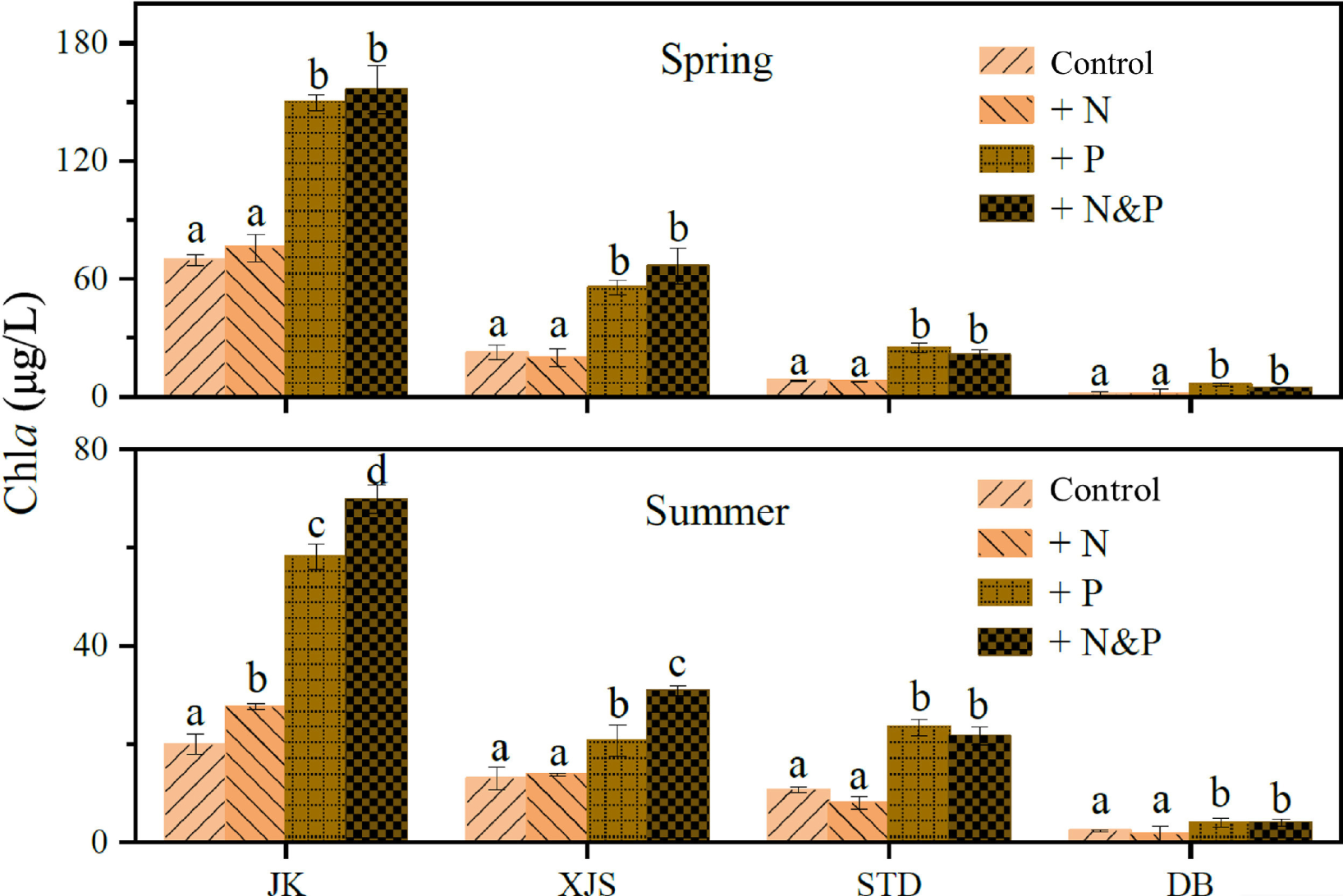 图4. 2018年5月和8月进行的营养盐添加实验中,不同处理组的Chla浓度