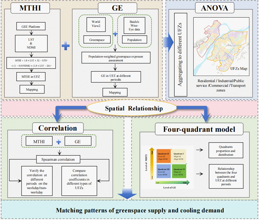 功能分区(Zoning)是我国城市用地组织与绿地系统规划的基本遵循,其核心目的在于通过优化功能布局,提升其服务美好生活需求的利用效能。城市绿地通过降低环境温度与缓解热岛效应,有效提升了人居环境的热舒适度,从而服务于提升居民生活品质的客观需求。然而,城市绿地降温功能异质性与效能公平性的协同关系仍需进一步研究。