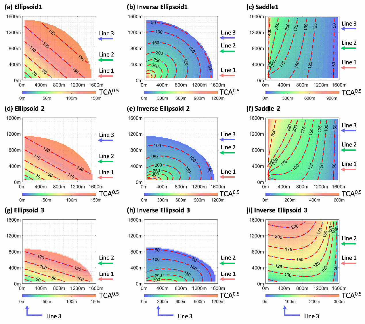 图2. BTN算法在简单理论曲面上提取的TCA及其等值线