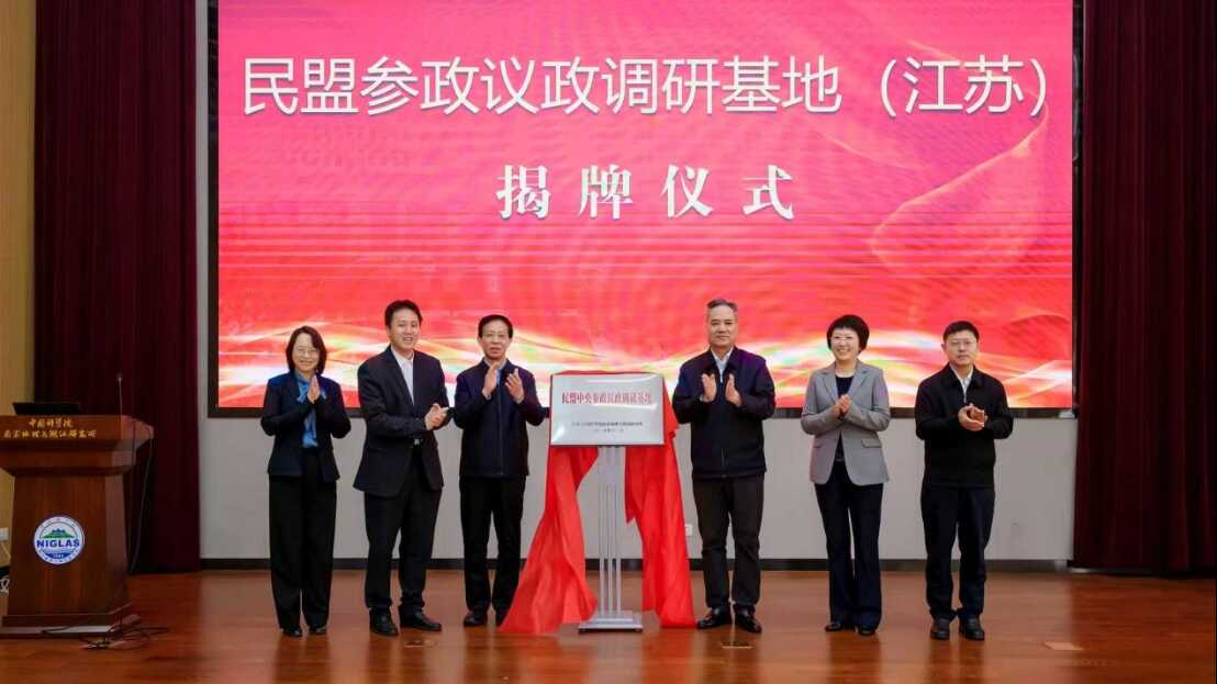2025年11月12日,民盟中央首个江苏省参政议政调研基地在南京地湖所正式揭牌成立。全国人大常委会委员、民盟中央副主席张道宏,江苏省政协副主席、民盟省委会主委胡刚,中国科学院南京地理与湖泊研究所党委书记张运林等领导共同为基地揭牌。揭牌仪式由江苏省人大常委会副秘书长、民盟省委会副主委王红红主持。