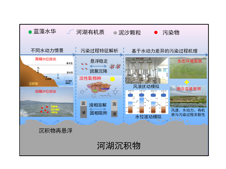 · 湖泊界面物质行为、效应、及致污控污机制:研发微界面过程可视化与调控方法,分析湖泊系统营养盐和污染物生物地球化学循环特征,研究营养盐及污染物质在湖泊多界面的迁移、转化以及归驱机制,探讨界面污染物质交换对湖泊富营养化及水生态环境效应,研发湖泊复合污染的界面防控方法。