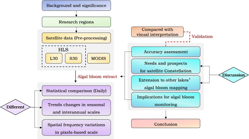 中国科学院南京地理与湖泊研究所张玉超研究员团队,近期利用HLS的L30(Landsat)与S30(Sentinel-2)产品,对我国主要富营养化内陆湖泊的藻类水华开展了长期遥感评估研究,并取得重要进展。
