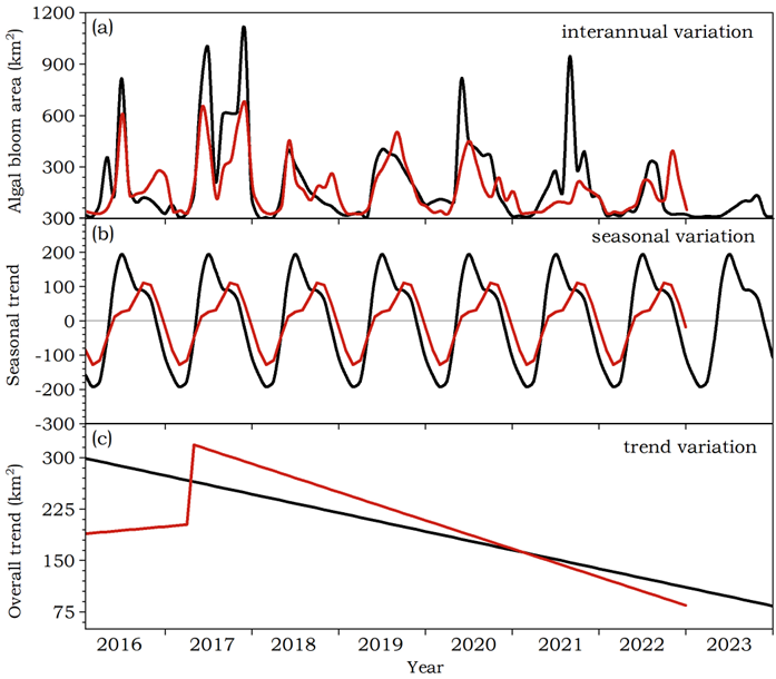 研究结果显示,HLS将有效影像数量增加了约67%,大幅提升了数据连续性,进而能够检测到更稳定、更频繁的藻华变化特征。与此同时,HLS有效降低了藻华峰值日期的漏检率,能够识别到单一Landsat数据所遗漏的短期藻华事件,从而更准确地捕捉藻华季节性变化趋势。此外,两种HLS产品在内陆湖泊应用中表现出良好的一致性(R²=0.93)。