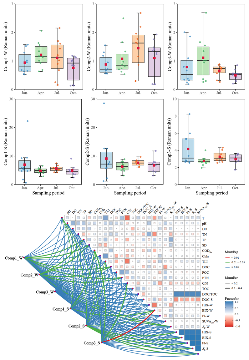 针对上述问题,中国科学院南京地理与湖泊研究所湖泊治理与生态工程团队刘成等人聚焦乌梁素海这一典型的寒旱区草型富营养湖泊,通过在水生植物过度繁殖期和冰封期开展的野外原位调研,解析了水、悬浮颗粒物及沉积物多介质中有机质赋存含量、形态及其循环过程。