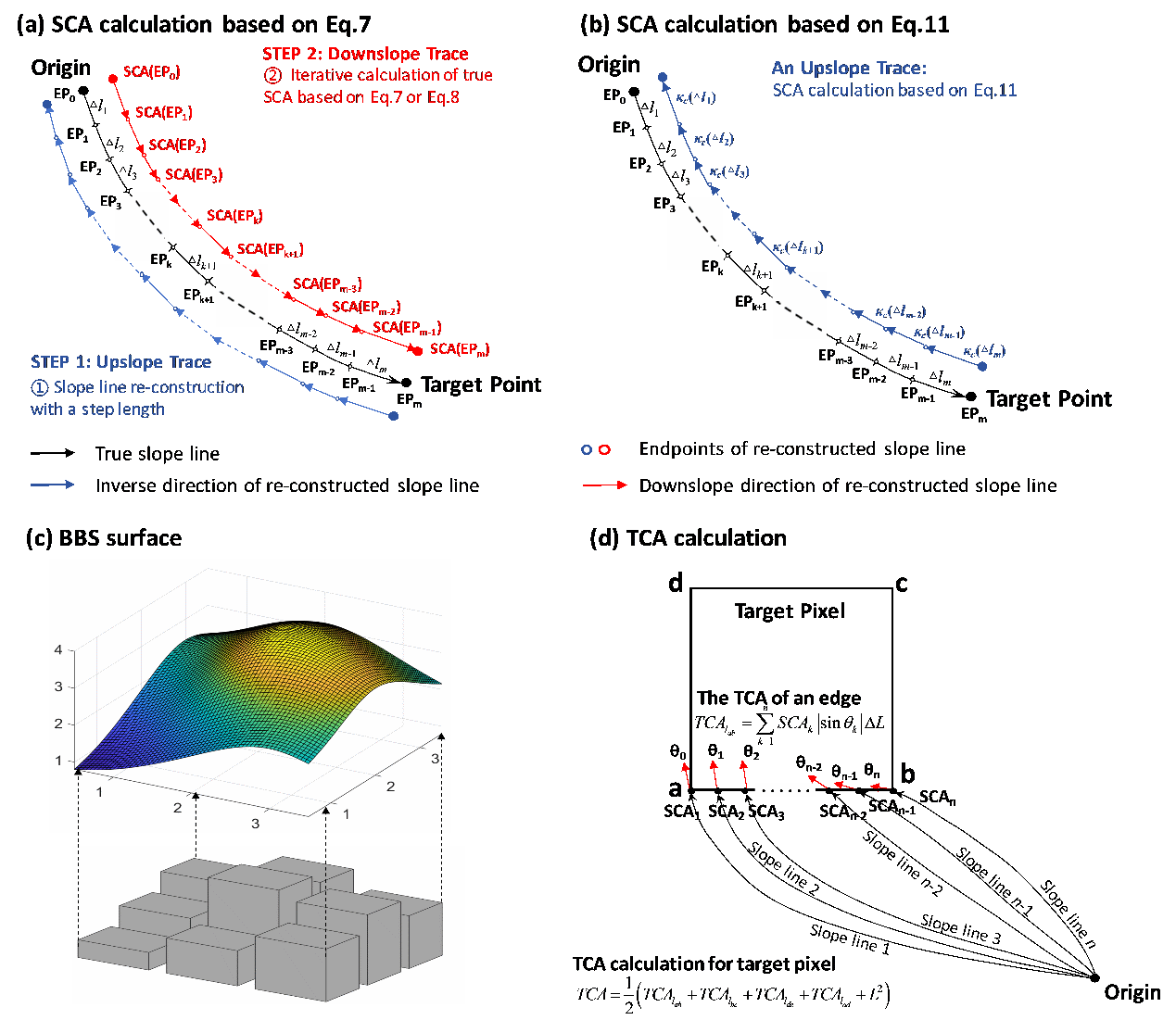 1) BTN算法与现有流向算法的本质区别在于前者得到的TCA是数值解,而后者得到的TCA是估计值,BTN算法为国内外首创的TCA数值求解方法,且理论上可应用于任何地形;