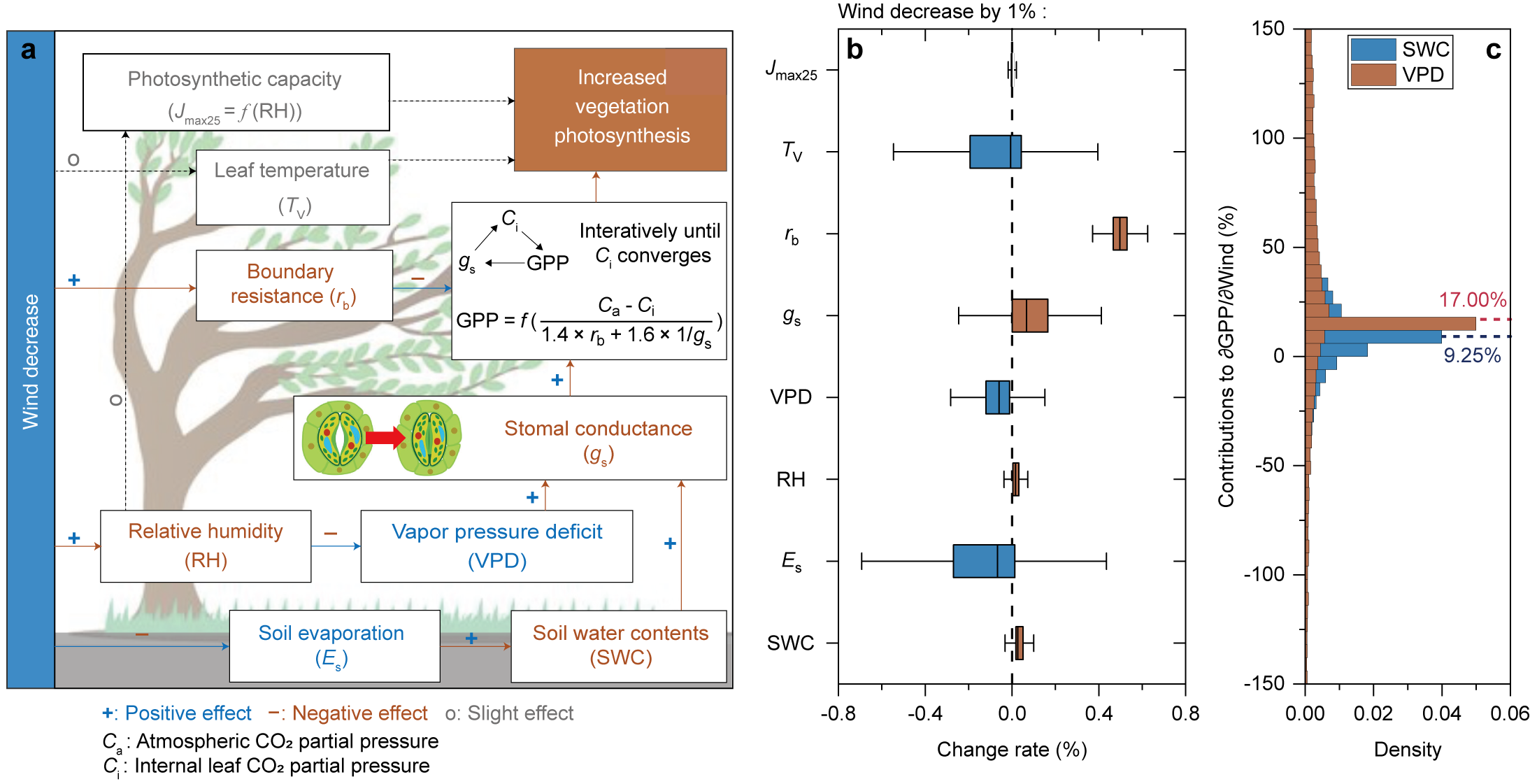 图3. 风速变化对全球陆地生态系统GPP贡献的定量评估