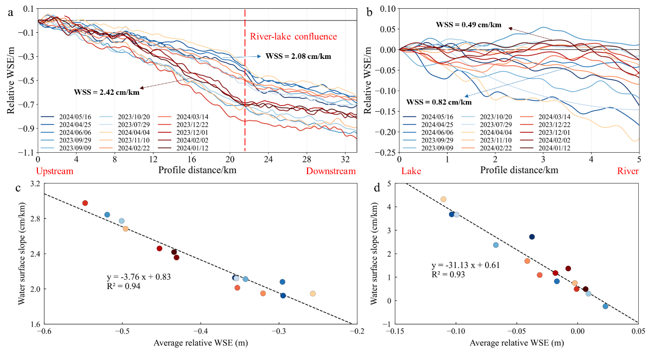 近日,中国科学院南京地理与湖泊研究所宋春桥研究员团队联合南方科技大学,利用新一代地表水和海洋地形(SWOT)卫星观测数据,首次在二维空间尺度上精细刻画了鄱阳湖-长江系统的水面高程场,揭示了江湖水文交互中显著的季节性“比降反转”与“顶托延伸”现象。