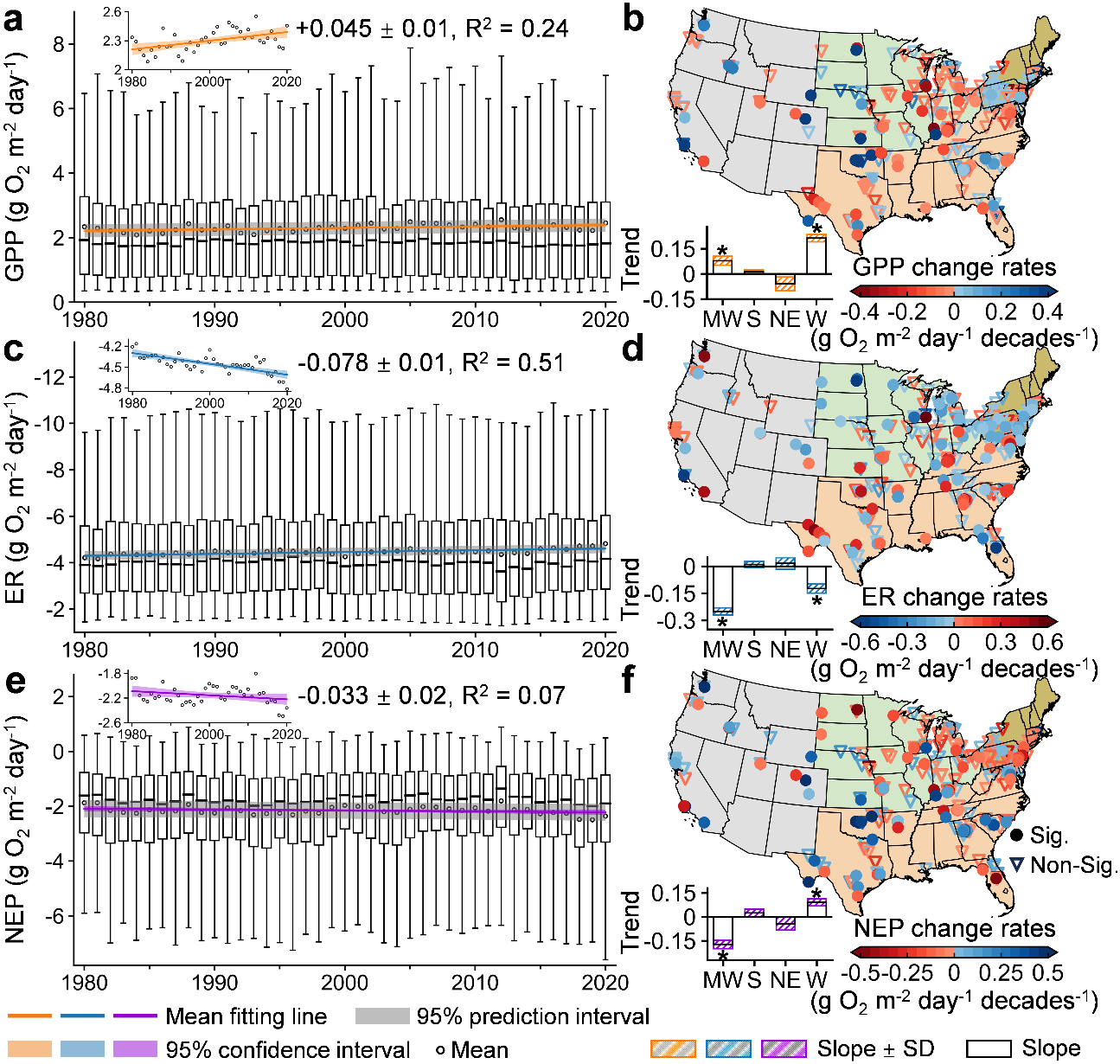 图2. 1980-2020年河流新陈代谢长期变化趋势