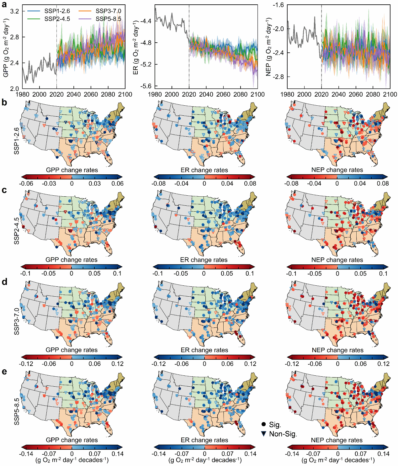 相关研究成果以Declining Predictions of Net Ecosystem Production in US Rivers and Streams Throughout the 21st Century为题,近期发表在Environmental Science & Technology。中国科学院南京地理与湖泊研究所关琦特别研究助理为第一作者,施坤研究员为论文通讯作者,合作者包括英国班戈大学R. Iestyn Woolway教授,南京地湖所秦伯强研究员,张运林研究员,香港大学冉立山副教授。研究工作得到国家自然科学基金青年科学基金(A类)等项目的资助。