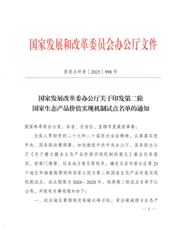 建立健全生态产品价值实现机制,是贯彻习近平生态文明思想的重要举措,是践行绿水青山就是金山银山理念的关键路径, 也是激活乡村内生动力、推进经济绿色转型、促进共同富裕、全面推动中国式现代化的重要任务。2021年国务院办公厅印发《关于建立健全生态产品价值实现机制的意见》,重点通过试点探索解决生态产品价值实现的度量难、交易难、变现难、抵押难等关键问题。2024年国务院第26次常务会议通过《生态保护补偿条例》;2025年中共中央办公厅国务院办公厅印发《关于健全资源环境要素市场化配置体系的意见》。