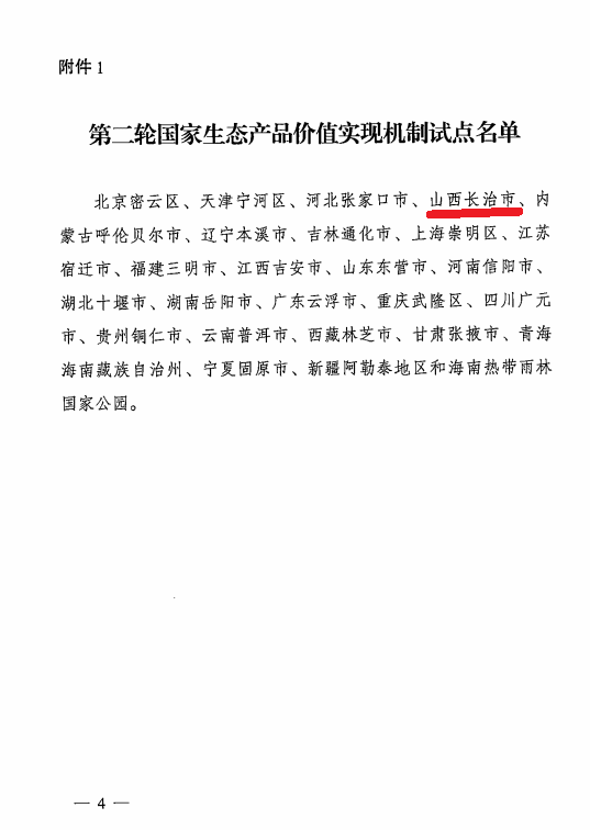 南京地湖所生态产品研究成果支撑长治市入选国家级试点