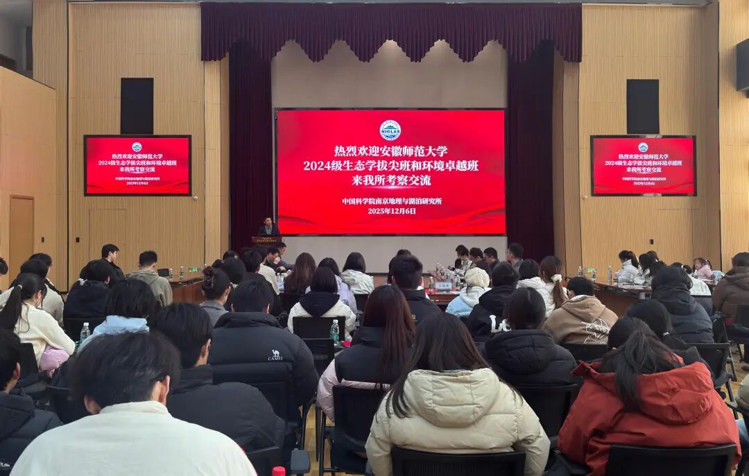 近日,安徽师范大学生态与环境学院组织2024级生态学拔尖班、环境工程卓越班共86名学子走进南京地理与湖泊研究所,开展专业素养考察与学术交流活动。安徽师范大学生态与环境学院党委副书记张海兵带队到访,环境工程卓越班主任方彩霞副教授、副主任沈舒婷博士,生态学拔尖班副主任姜坤博士及辅导员屈亚舒全程参加;南京地湖所科技处处长蔡永久、研究生部主任陈嵘及多位科研骨干参与交流。